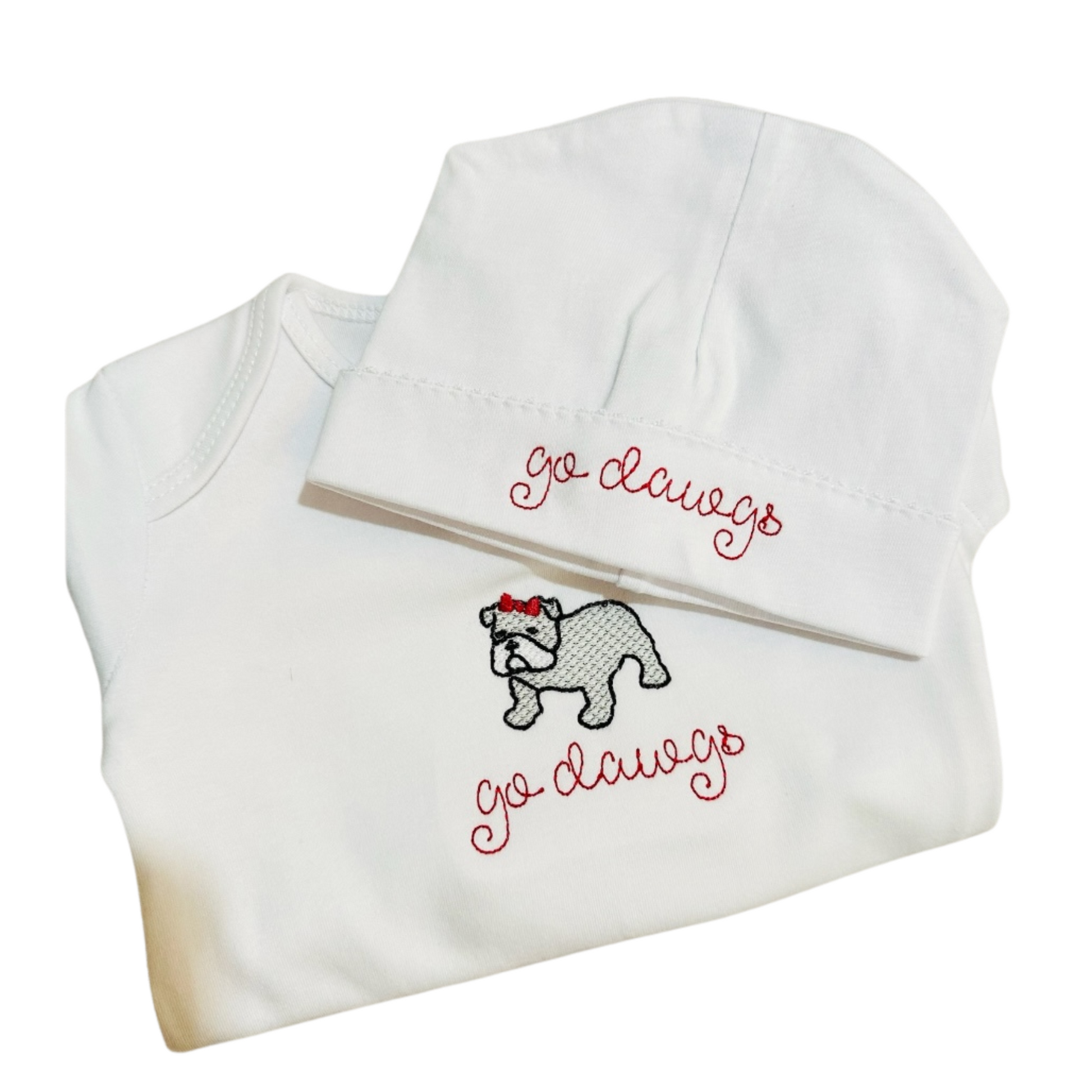 Welcome the newest teammate in style with this custom Baby Sibling Fan Set, with a sleeper day gown or onesie and matching hat designed to celebrate the special bond between siblings - and their shared team spirit!