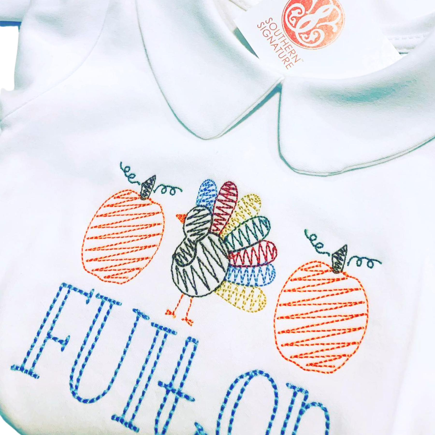 - Crafted from soft, high-quality fabric with durable stitching, this embroidered turkey shirt is as comfortable as it is charming.