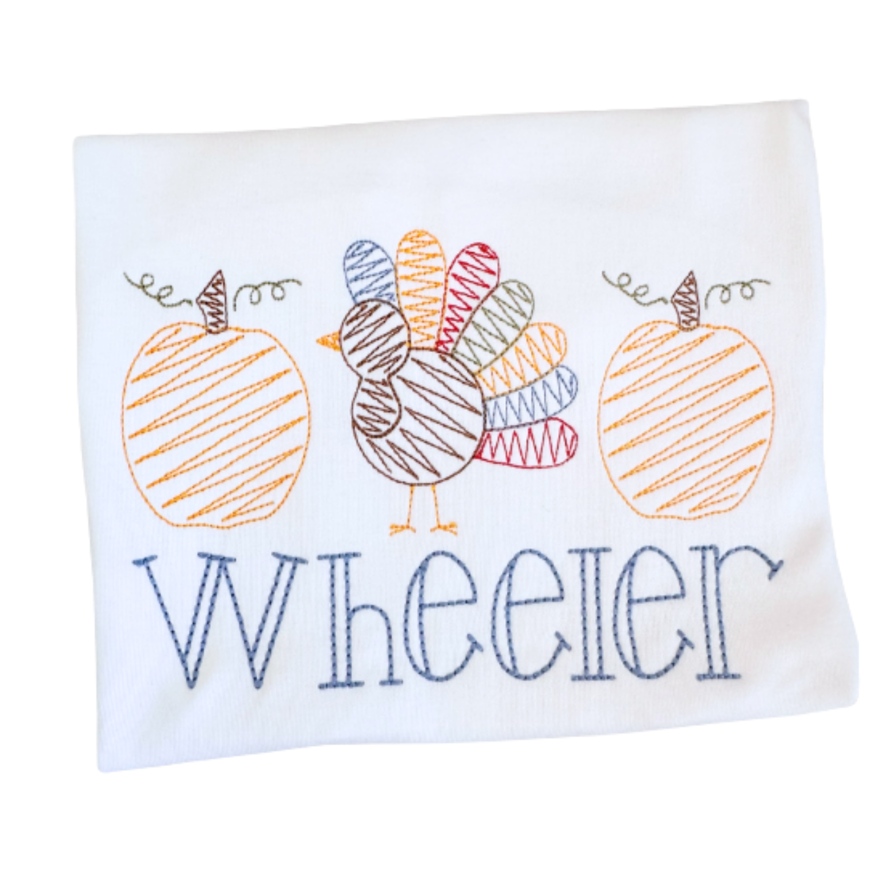 Dress your little one in festive style with our Scribble Turkey Design - a personalized embroidered Thanksgiving shirt featuring a playful turkey and pumpkins design. Perfect for fall gatherings, school events, and family holiday photos, this custom kids Thanksgiving outfit adds a sweet seasonal touch with colorful stitched details and your child’s name.